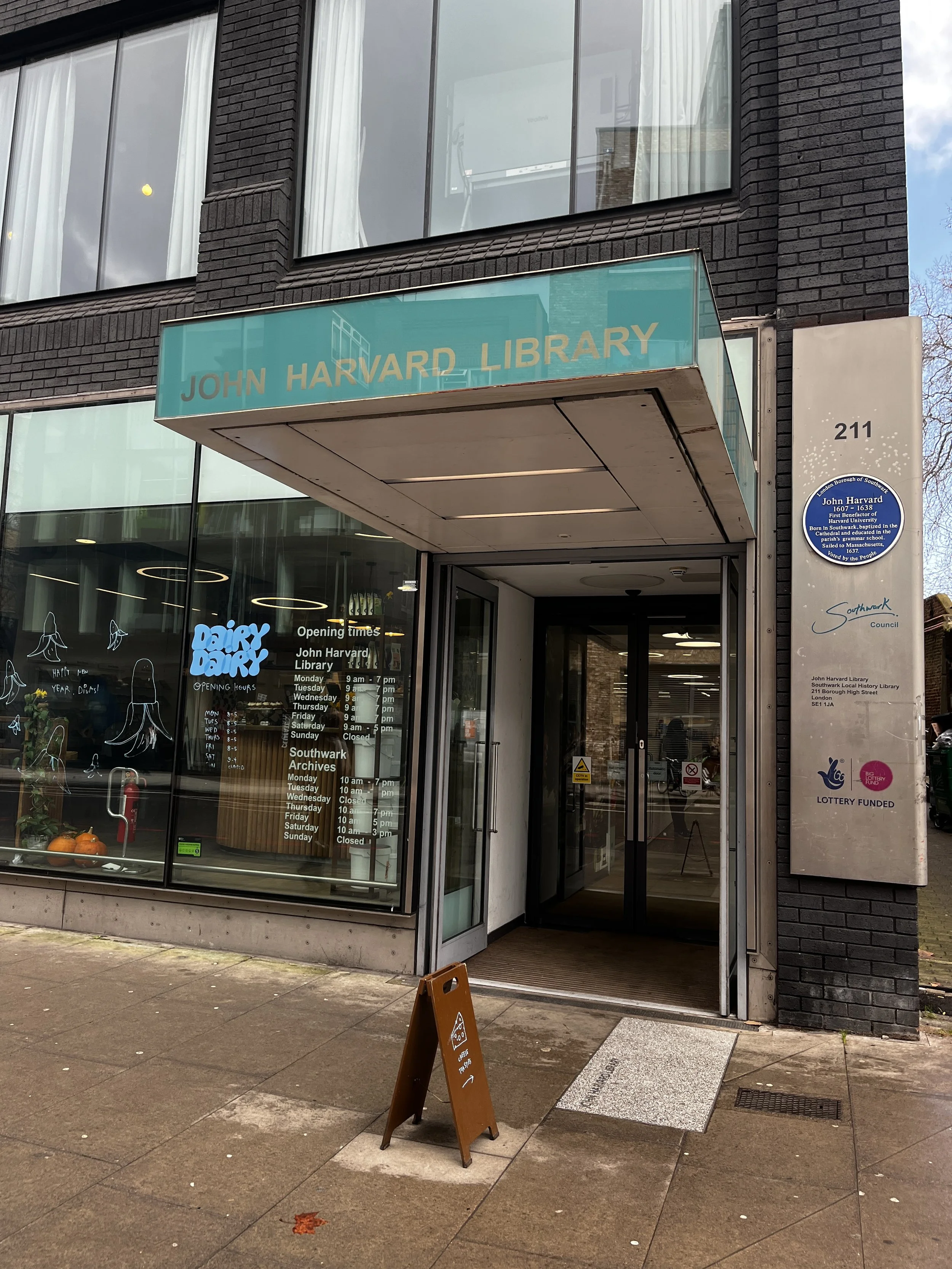 John Harvard Library is named after the Southwark clergyman John Harvard who emigrated to Massachusetts and bequeathed most of his estate, including hundreds of books, to the college now known as Harvard University. It’s home to the Local History Library.